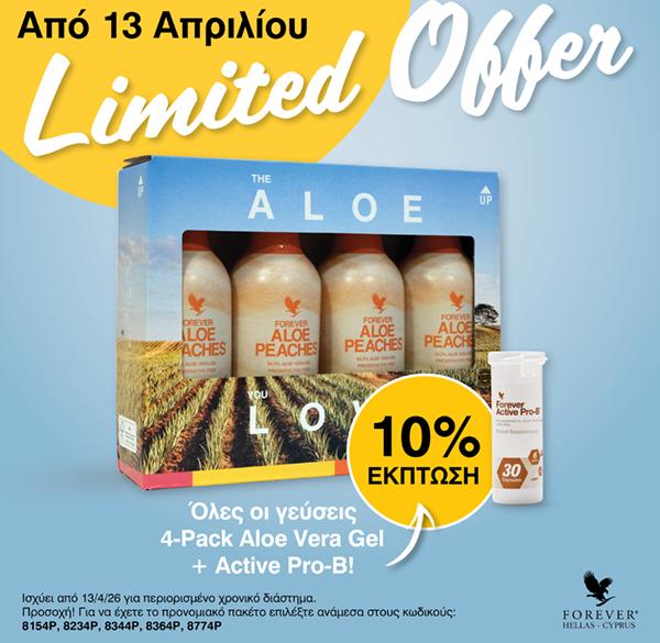 Αποκτήστε τους αγαπημένους σας χυμούς Aloe Vera Forever σε πακέτο 4 τεμαχίων, σε συνδυασμό με το PRO-B, για καθημερινή απόλαυση και ευεξία, με έκπτωση 10%